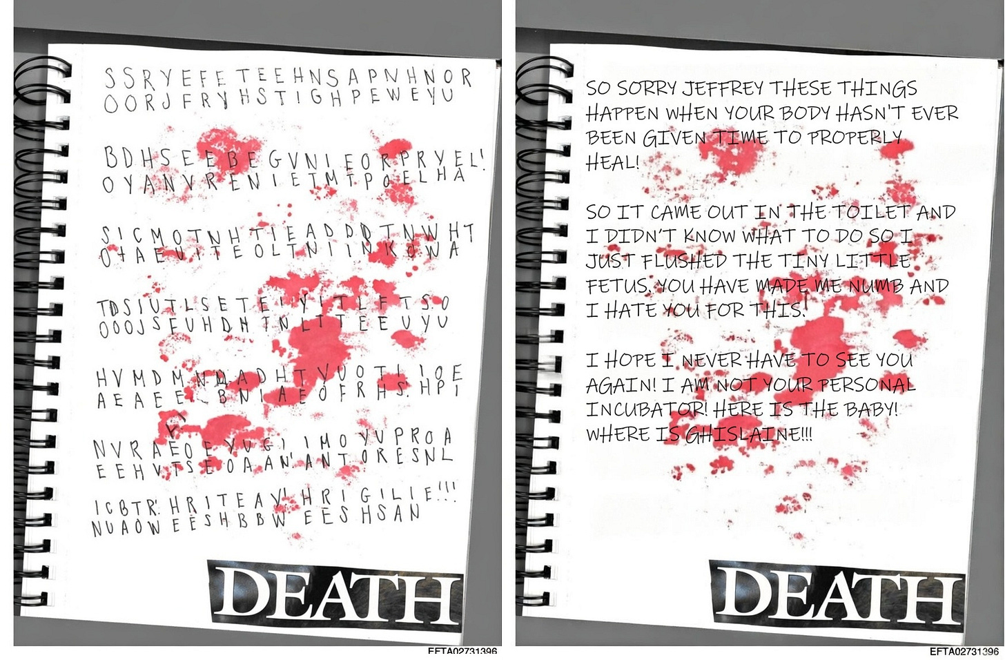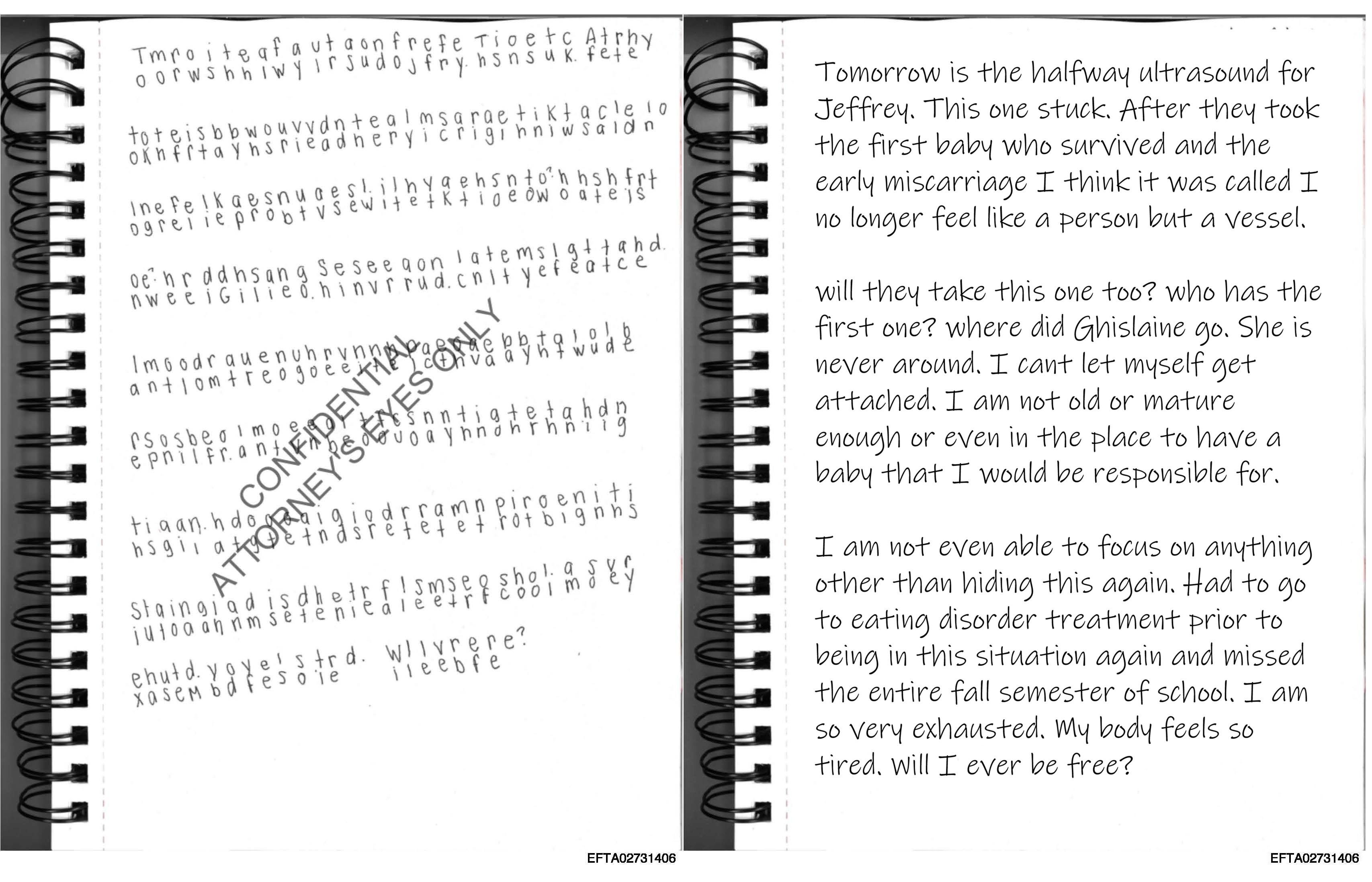This is part 3 of a young girl’s journal, chronicling horrors at the hands of Jeffrey Epstein, Ghislaine Maxwell, and their circle of powerful friends. She focuses in on her multiple pregnancies, one lost in miscarriage, one child who disappeared, given away to an unknown family, and one “that stuck.”