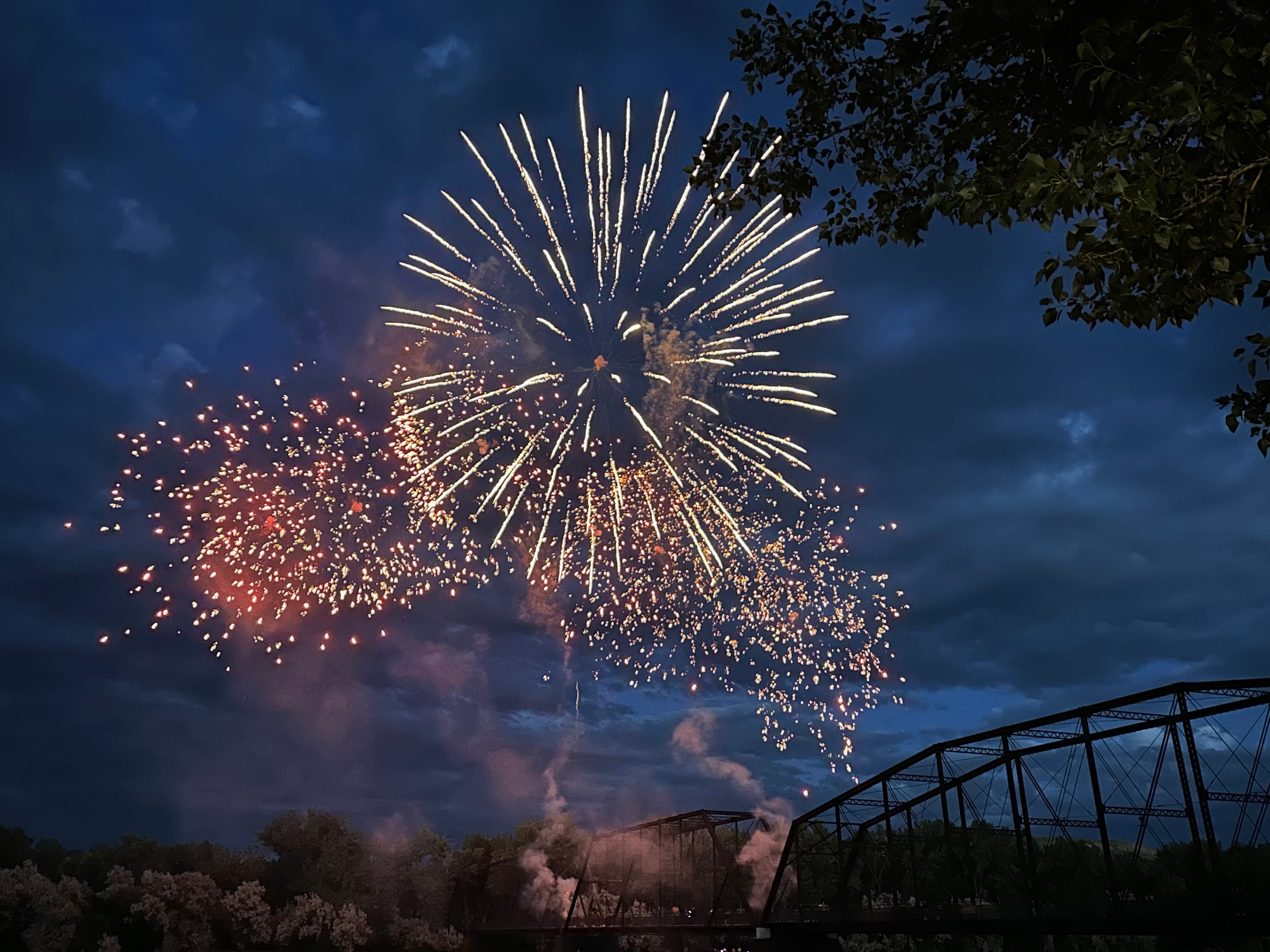 Just after dusk a hush came over the crowd as the first fireworks ignited off the bridge. Balls and spirals of every color shot up and over the river, high into the sky, skidding across the surface of the water, dipping and diving as the crowd oohed and aahed. We gasped and applauded at the mortars, swans, jellyfish, and strobes, saving the best and most magnificent for last: the Waterfall. White sparks lit the entire span of the bridge for nearly a minute, pouring into the water and lighting up the river, as thunderous applause echoed down the riverbank all the way to the levee and up to the Grand Union, people cheering and whistling from their windows in the old hotel. And then it was over, chairs folded, sleeping children strapped to their car seats, as the first few raindrops fell in a perfectly-timed summer thunderstorm.