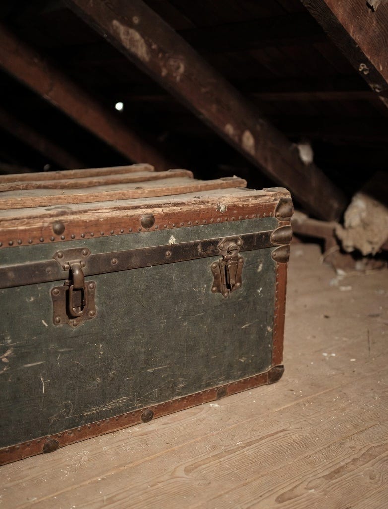 Before I could think, she began pounding on the attic door, fighting the lock and banging at the hinges, and I heard the all-too-familiar scraping sounds on the ceiling that started like mice, then growing, throbbing as she rocked her little trunk back and forth trying to get out. She wailed pitifully, crying from somewhere deep in her soul, begging for someone, anyone, to come get her. Sweat soaked through my pajamas and down my stomach, dripping into the sheets. I’d done this so many times; I couldn’t help her.