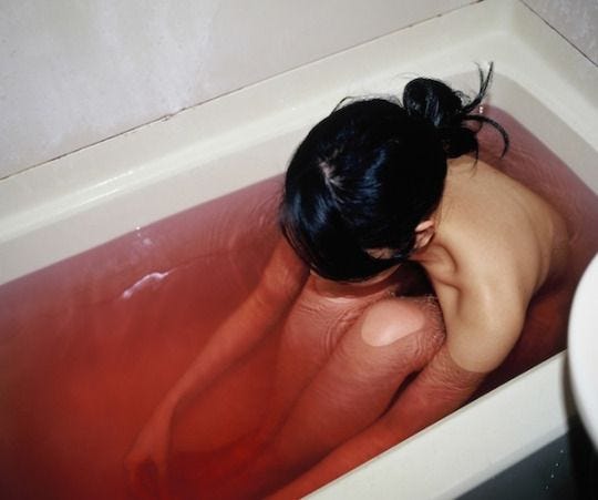 “Get out! Get out!” I bellowed, bowing low between my knees as I continued to push. I had no control over anything other than my breath, low and steady, tilting my head back and forth and leaning one ear at a time on my shoulders in the same persistent rhythm. Sometimes I’d give in and float up and out of my body, letting “her” do all the work below. Then I’d crash back to earth, diving so deep inside myself that I thought I would drown. There wasn’t any time between the pains and pushing, and I gurgled, unable to catch my breath deep enough to matter.