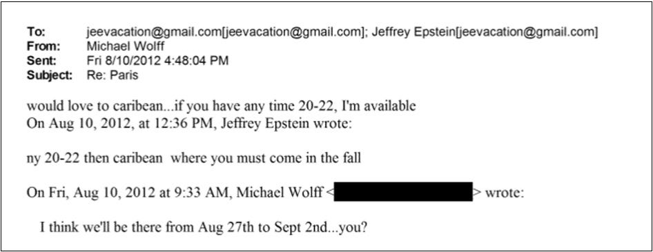 Fast forward to January 30th, 2026, when the Department of Justice released 3.5 million newly-public files from the Epstein case, including 1,830 pages of emails between Michael Wolff and Jeffrey Epstein. In their conversations, which now appeared to start much earlier, Wolff traveled to meet Epstein all over the world, interviewing him, bringing his family, even discussing visiting Epstein’s island in the Caribbean.