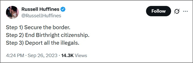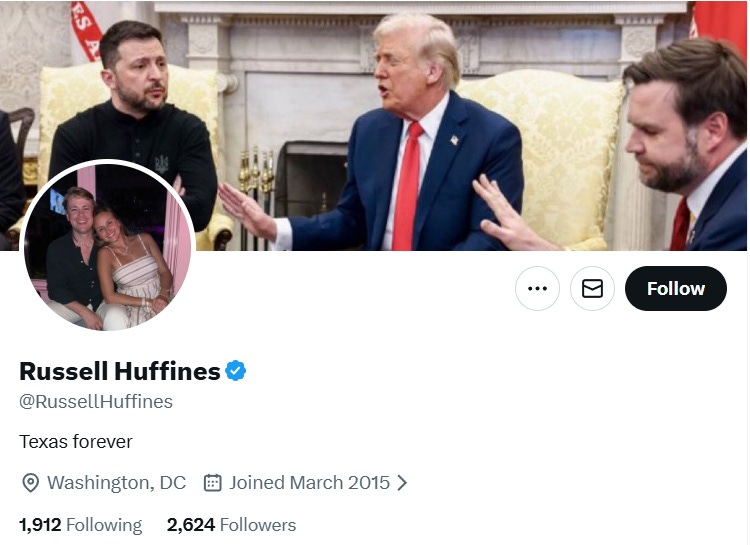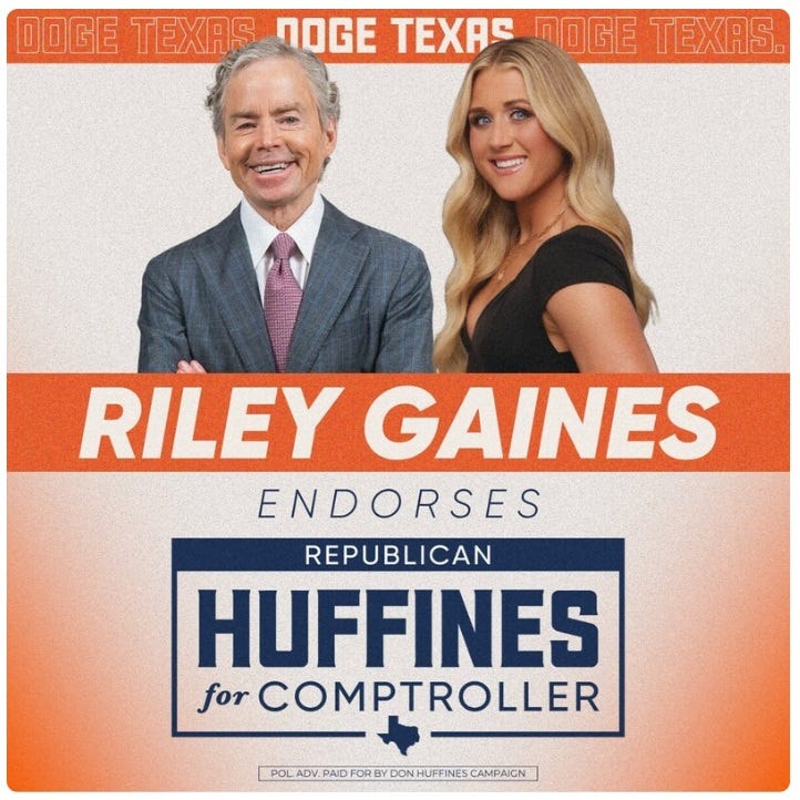Russell Huffines, who uses his social media to promote ideas like the SAVE Act—which makes it more difficult for rural voters and married women (who have changed their names) to do in-person voting—tougher border policies, and TrumpRx.gov, has made clear his devotion to his father and his father’s policies, which align with MAGA. He is very transparent about his lack of support for Ukraine, and wants birthright citizenship abolished.
